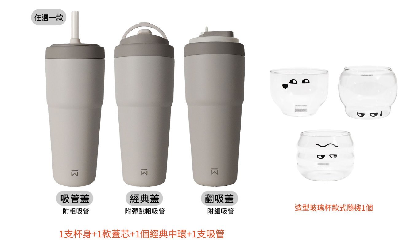 【蝦太太 x WOKY沃廚】渾圓杯3.0-MOZU模組800ml-光合色 1入 + 造型玻璃杯(款式隨機) 1入